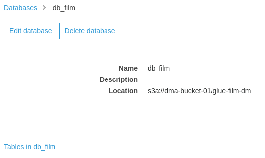 You can describe a database by running spark.sql("DESCRIBE DATABASE db_film")